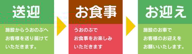 うおのぶまでお客様を施設の車で送迎していただき、その後ランチをお楽しみいただきます。