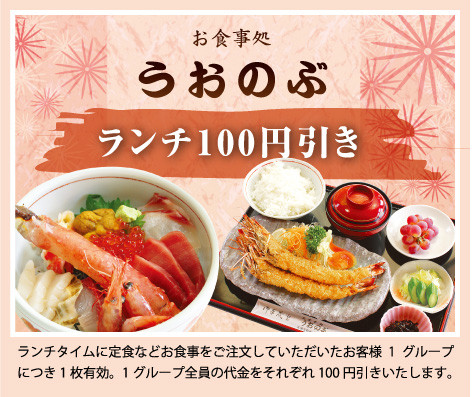 ※宴会用・ディナー用クーポンの利用は休止とさせていただきます。(2018年1月より)
